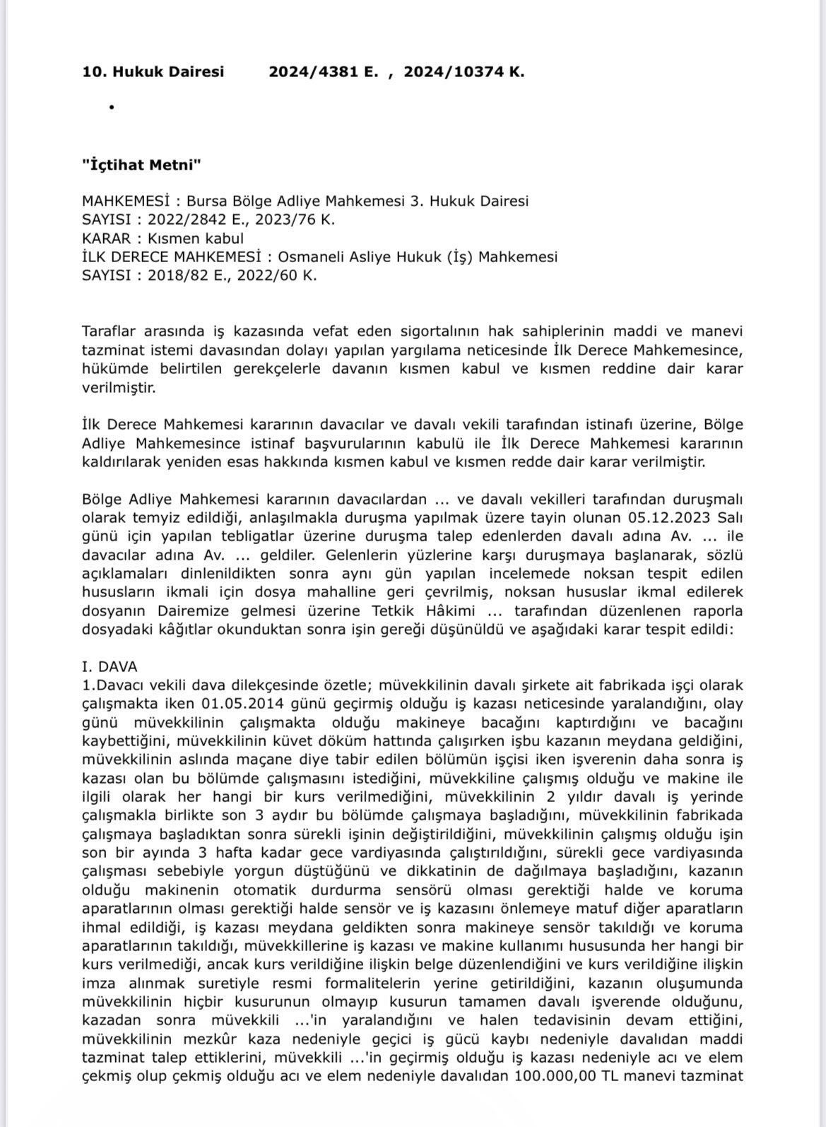 Oca102026Yargıtay KararıYarg. 10.HD 2024/4381 E. 10374 K. 5.11.2024 Yayın Görüntülemeleri: 49 Ocak 10, 2026 Bu yazıyı paylaş Share on FacebookShare on Facebook TweetShare on Twitter Pin itShare on Pinterest Share on LinkedInShare on LinkedIn Post navigationÖncekiPrevious post:Yurtdışı Çıkış Yasağının Kaldırılması (Adli ve İdari)SonrakiSonraki Yazı:Kaskoya Açılan Davalarda Görevli Mahkemeİlgili yazılarKiracı evden çıktığında, ödediği depozitonun son kira bedeli olarak güncellenerek iade edilmesi gerekirOcak 10, 2026Uyuşturucu Madde Kullanmada Kamu Davasının Açılmasının Ertelenmesi ve İnfaz DurdurmaOcak 10, 2026Talep artırım dilekçesi verildikten sonra gelen ek rapor doğrultusunda yeniden talep artırım dilekçesi verilebilir.Ocak 10, 2026Adli Arama ve İdari Aramaya İlişkin İçtihatlarOcak 10, 2026Alacaklı, borcun zamanında ödenmemesi nedeniyle enflasyon dolayısıyla uğradığı temerrüdü aşan munzam zararını borçludan talep edebilir.Ocak 10, 2026Alacaklı Takip Konusu Yapmadığı ve Takip Dosyasına Sunmadığı Bir Belgeyi İtirazın Kaldırılması Aşamasında İleri Sürebilir Mi?Ocak 10, 2026